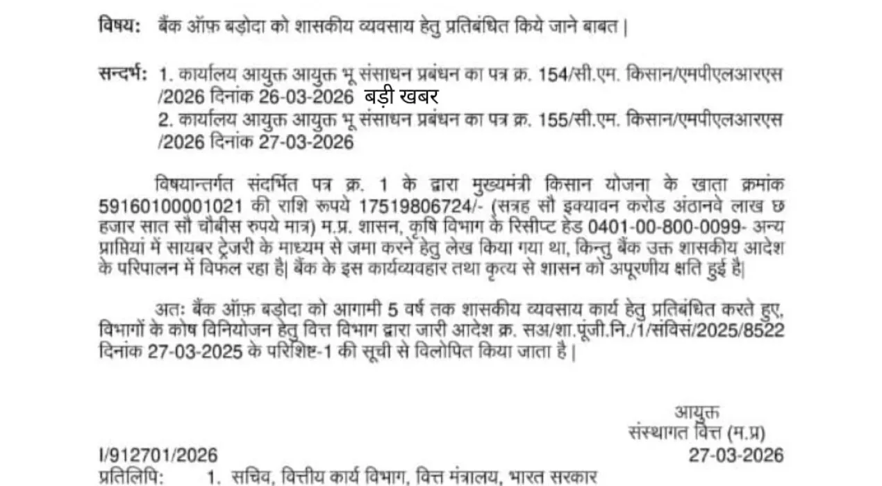 मध्य प्रदेश सरकार का सख्त कदम: बैंक ऑफ बड़ौदा 5 साल के लिए ब्लैकलिस्ट