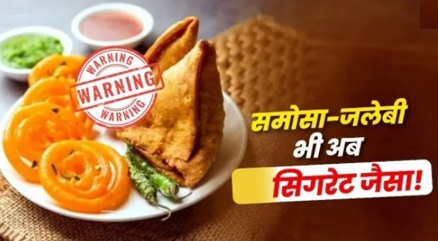 जलेबी-समोसा सिगरेट जैसा खतरनाक?, सिगरेट जैसी चेतावनी के साथ मिलेगा समोसा- जलेबी।