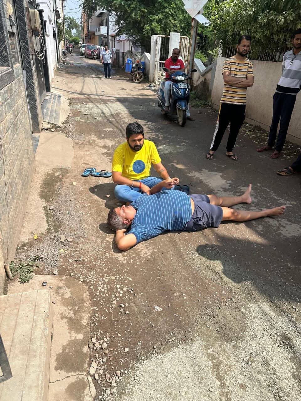 राजेंद्र नगर में सड़क मरम्मत के लिए सड़क पर आंदोलन