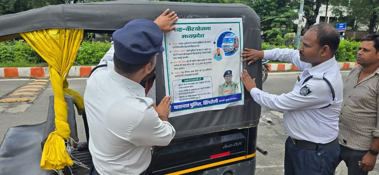 सड़क दुर्घटनाओं में घायलों की मदद के लिए सिंगरौली पुलिस ने किया राह-वीर योजना का प्रचार।