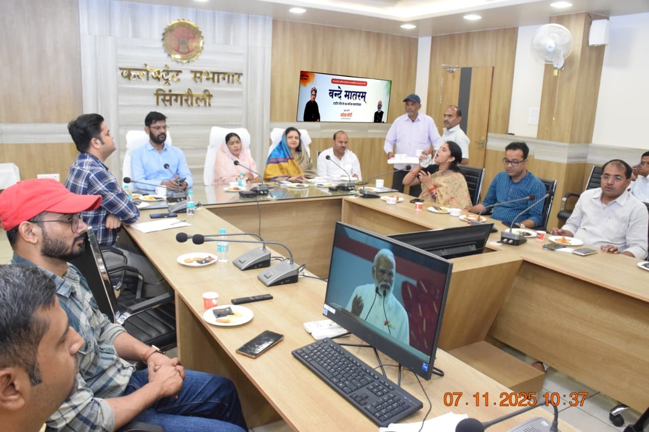 सिंगरौली। भारत सरकार द्वारा राष्ट्रीय गीत ‘वंदे मातरम्’ की 150वीं वर्षगांठ को 7 नवम्बर 2025 से 7 नवम्बर 2026 तक वर्षभर मनाने के निर्णय के तहत सिंगरौली कलेक्ट्रेट कार्यालय में विशेष कार्यक्रम आयोजित किया गया।